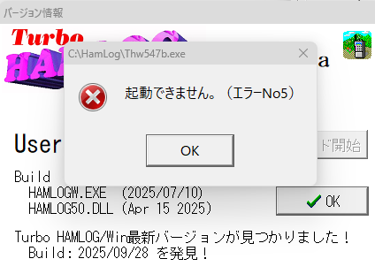 > 5.47bがダウンロードできません、> 起動できません(エラ-NO5)が出てきます。ダウンロード方法はホームページからや、Hamlogアプリのヘルプからとか、色々な方法が有ります。