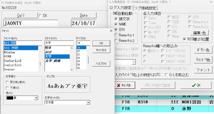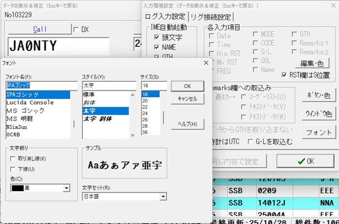 ついでに、コールサインだけ大きくしたいときはSHIFTキーを押しながらフォントをクリックしてサイズを選択。IPAゴシックのものはこれでコールサインを大きくしています。いかがでしょうか?