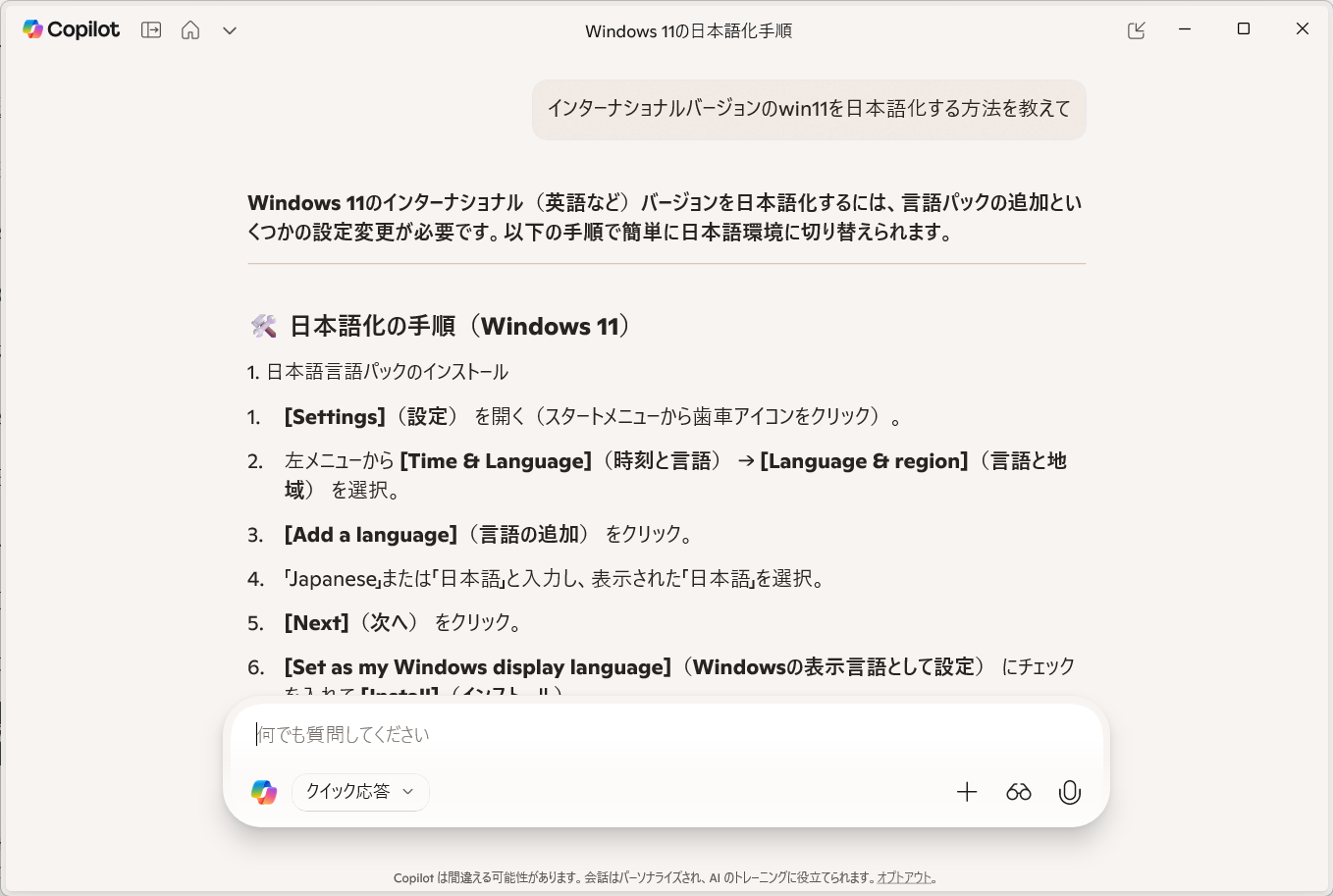 PCはHPの海外モデルにWindows 11のインターナショナルバージョンで日本語を表示・入力しています。