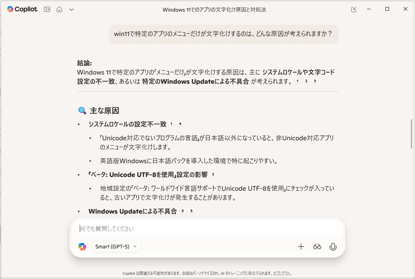 > 特定のアプリだけ不具合が起こる場合の原因について AI に質問してみました。